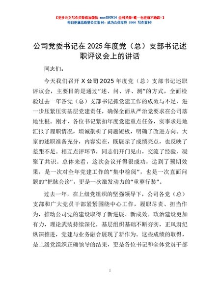 / 公司党委书记在2025年度党(总)支部书记述职评议会上的讲话