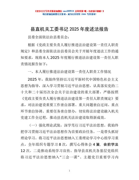 / 县直机关工委书记2025年度述法报告