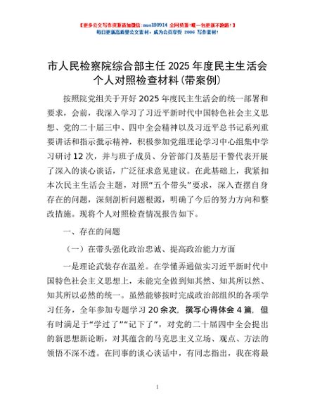 / 市人民检察院综合部主任2025年度民主生活会个人对照检查材料(带案例)
