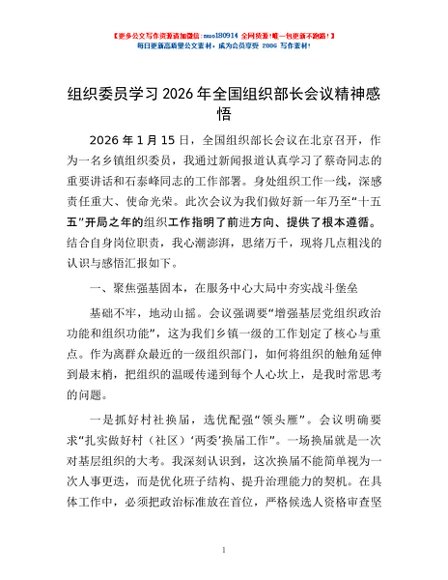 / 组织委员学习2026年全国组织部长会议精神感悟