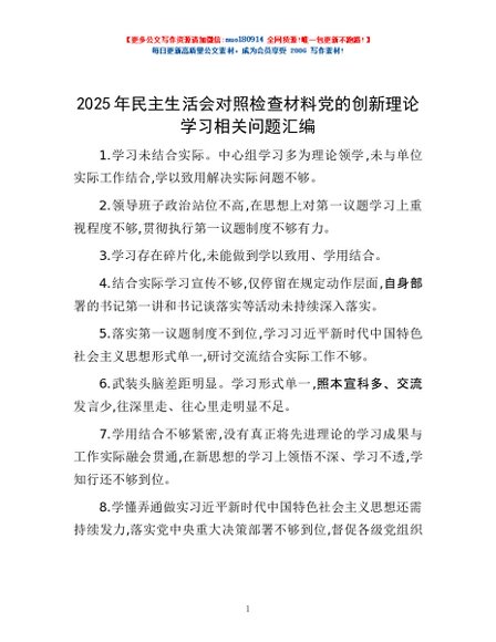 / 2025年民主生活会对照检查材料党的创新理论学习相关问题汇编