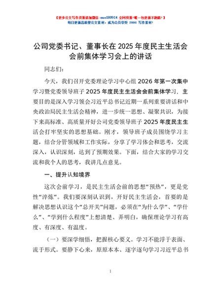 / 公司党委书记、董事长在2025年度民主生活会会前集体学习会上的讲话