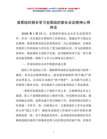 / 县委组织部长学习全国组织部长会议精神心得体会