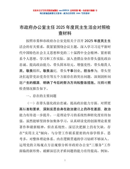 / 市政府办公室主任2025年度民主生活会对照检查材料