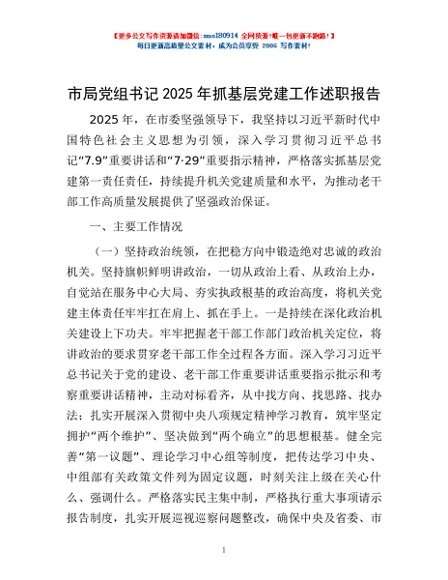 / 市局党组书记2025年抓基层党建工作述职报告