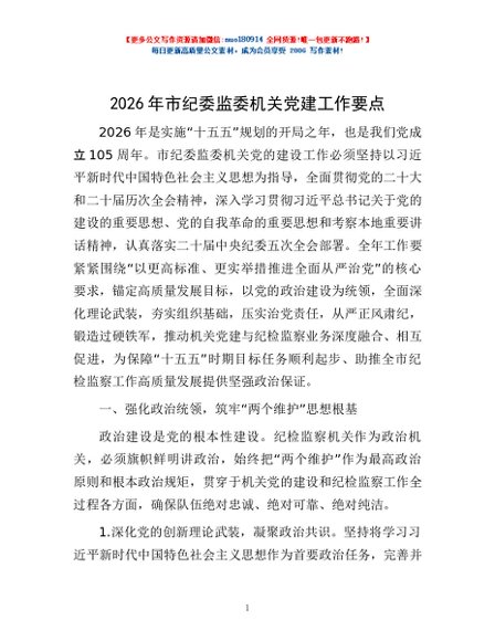 / 2026年市纪委监委机关党建工作要点