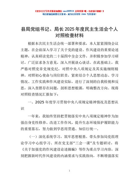 / 县局党组书记、局长2025年度民主生活会个人对照检查材料
