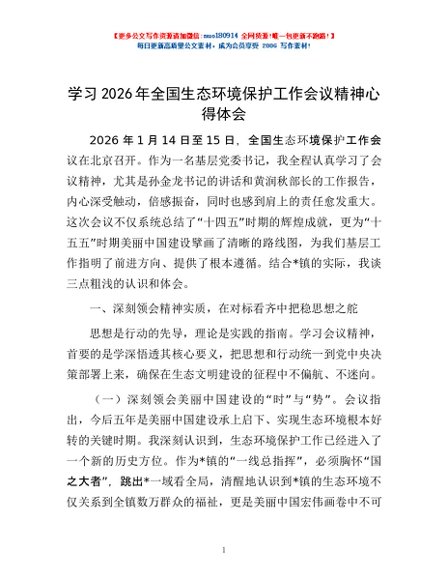 / 学习2026年全国生态环境保护工作会议精神心得体会