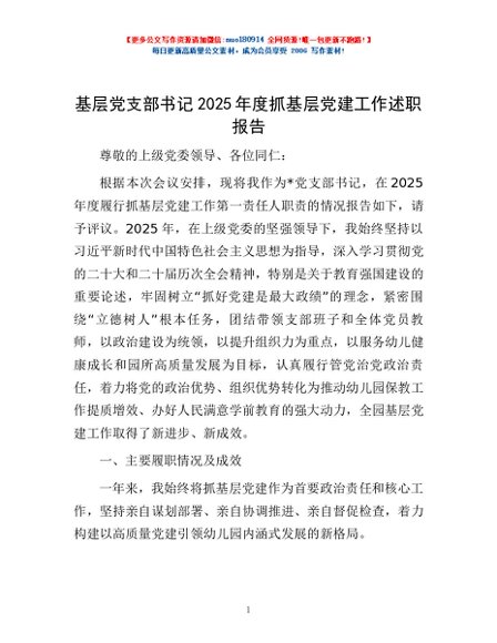 / 基层党支部书记2025年度抓基层党建工作述职报告