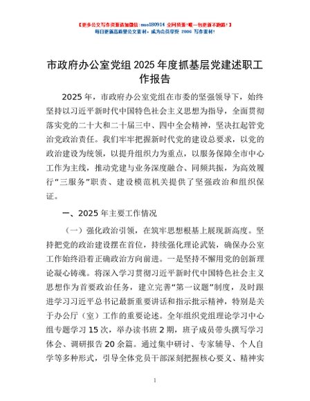 / 市政府办公室党组2025年度抓基层党建述职工作报告