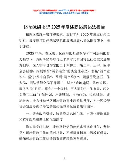 / 区局党组书记2025年度述职述廉述法报告