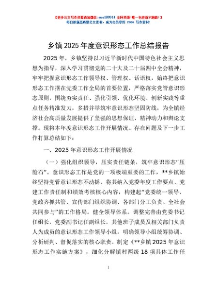 / 乡镇2025年度意识形态工作总结报告