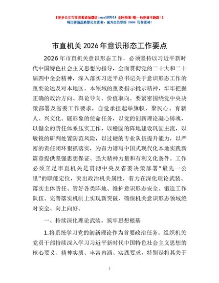 / 市直机关2026年意识形态工作要点