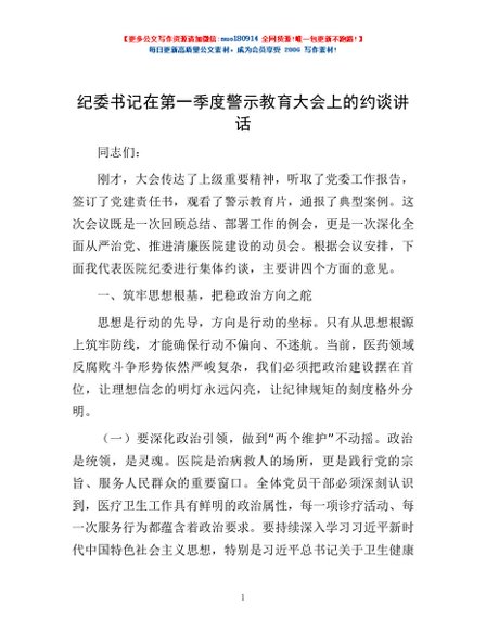 / 纪委书记在第一季度警示教育大会上的约谈讲话