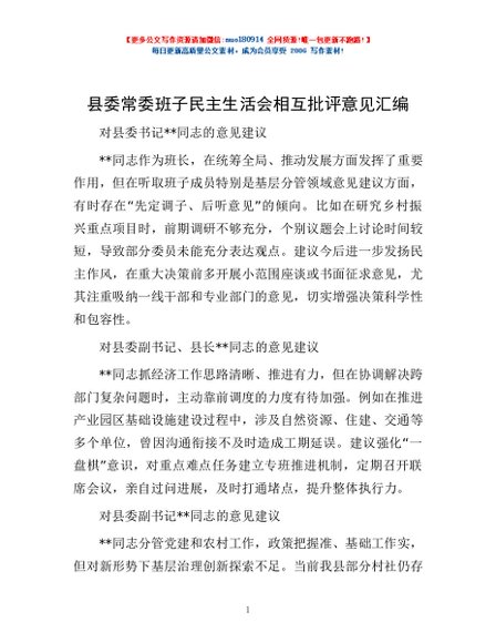 / 县委常委班子民主生活会相互批评意见汇编