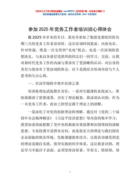 / 参加2025年党务工作者培训班心得体会