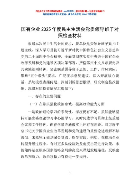 / 国有企业2025年度民主生活会党委领导班子对照检查材料