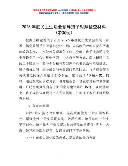 / 2025年度民主生活会领导班子对照检查材料(带案例)