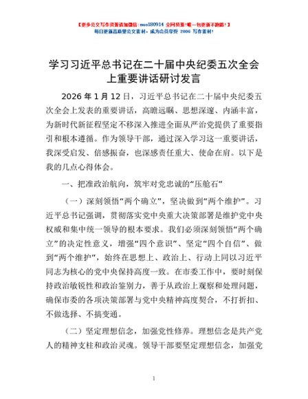 / 学习习近平总书记在二十届中央纪委五次全会上重要讲话研讨发言
