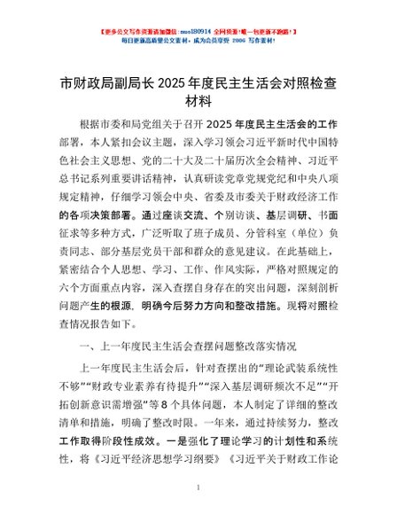 / 市财政局副局长2025年度民主生活会对照检查材料