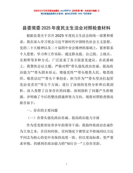 / 县委常委2025年度民主生活会对照检查材料