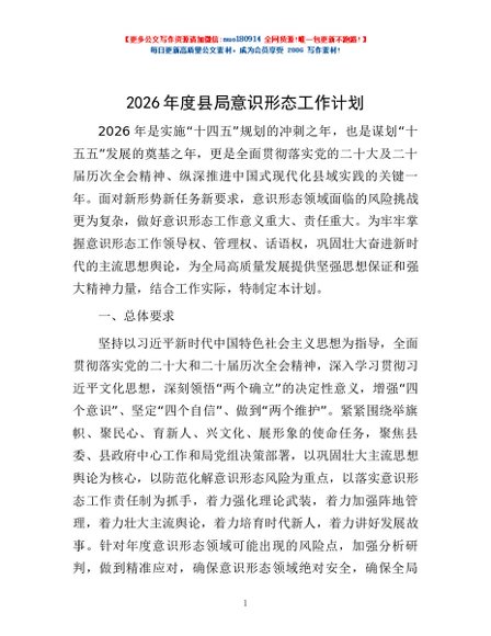 / 2026年度县局意识形态工作计划