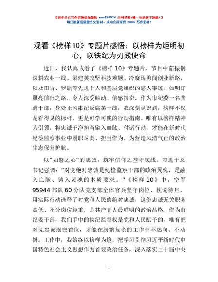 / 观看《榜样10》专题片感悟:以榜样为炬明初心,以铁纪为刃践使命