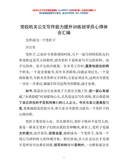 党校机关公文写作能力提升训练班学员心得体会汇编