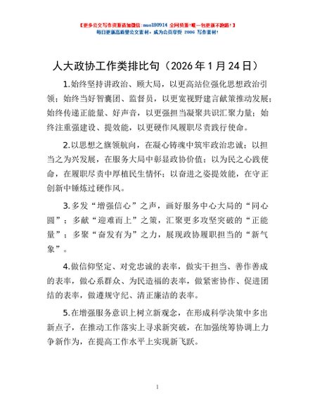 / 人大政协工作类排比句(2026年1月24日)