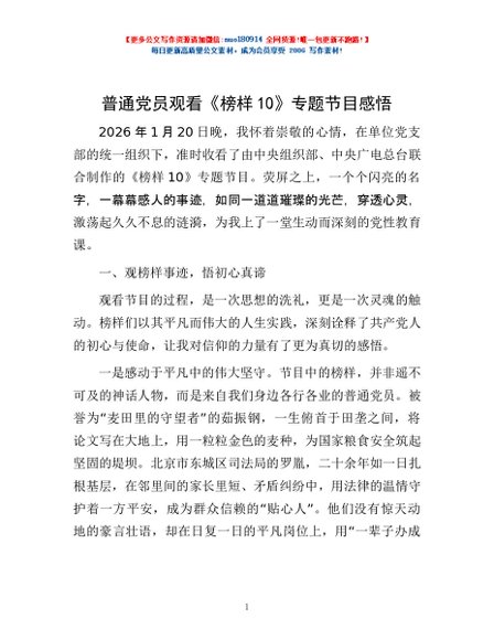 / 普通党员观看《榜样10》专题节目感悟