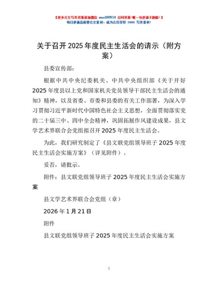 / 关于召开2025年度民主生活会的请示(附方案)