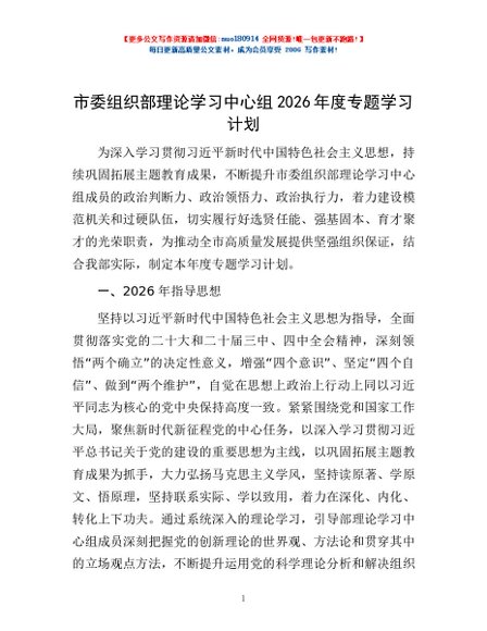 / 市委组织部理论学习中心组2026年度专题学习计划
