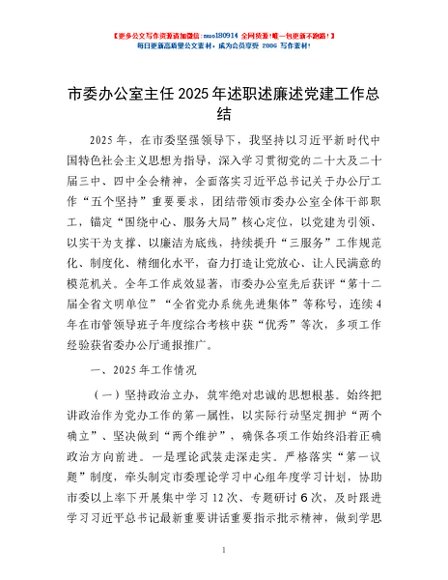 / 市委办公室主任2025年述职述廉述党建工作总结