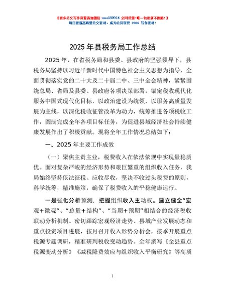 / 2025年县税务局工作总结