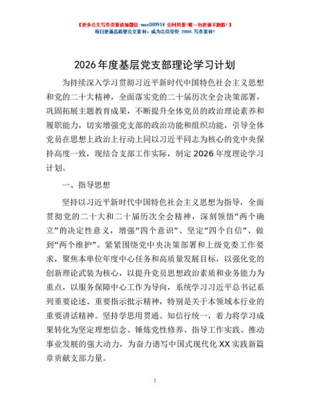 / 2026年度基层党支部理论学习计划