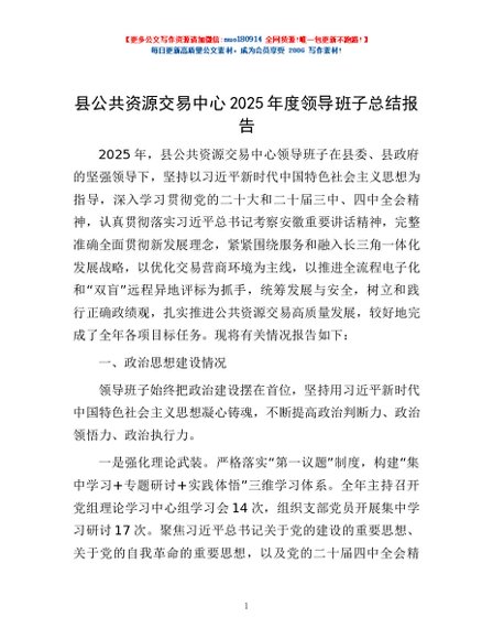 / 县公共资源交易中心2025年度领导班子总结报告