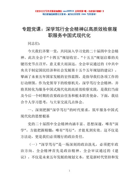 / 专题党课:深学笃行全会精神 以高质效检察履职服务中国式现代化