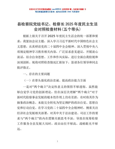 / 县检察院党组书记、检察长2025年度民主生活会对照检查材料(五个带头)