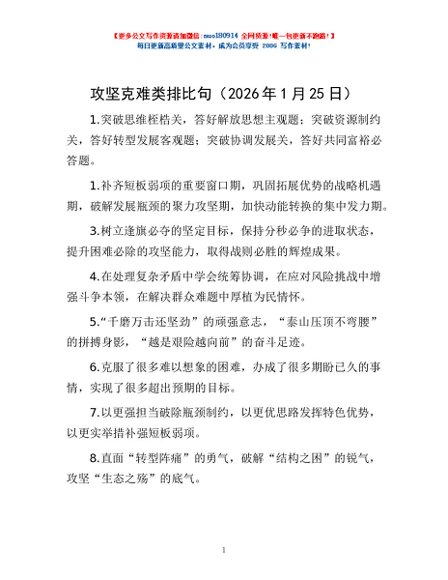 / 攻坚克难类排比句(2026年1月25日)
