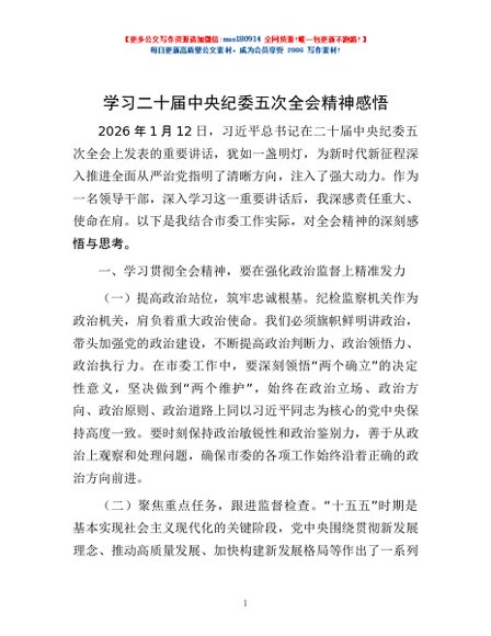 学习二十届中央纪委五次全会精神感悟