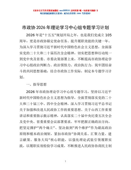 / 市政协2026年理论学习中心组专题学习计划