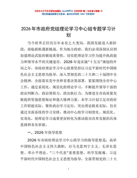 / 2026年市政府党组理论学习中心组专题学习计划