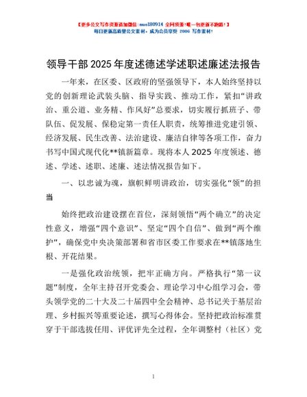 / 领导干部2025年度述德述学述职述廉述法报告