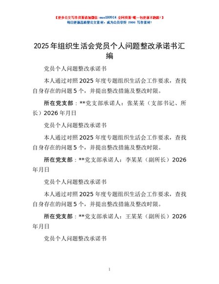 / 2025年组织生活会党员个人问题整改承诺书汇编