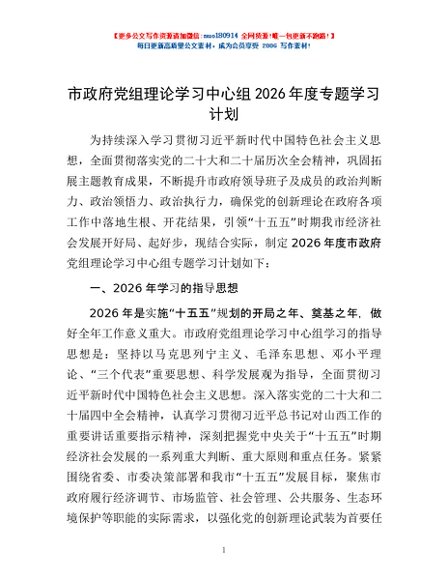 / 市政府党组理论学习中心组2026年度专题学习计划