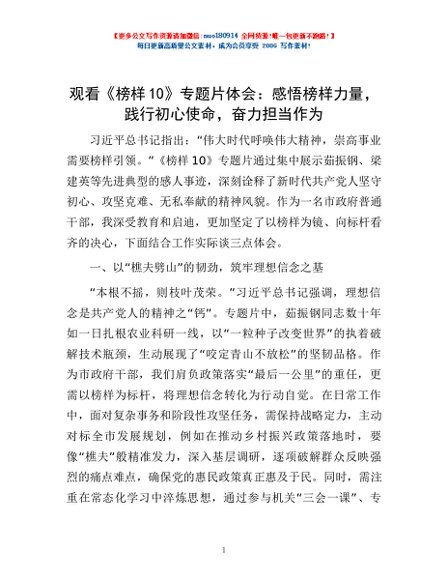 / 观看《榜样10》专题片体会:感悟榜样力量,践行初心使命,奋力担当作为