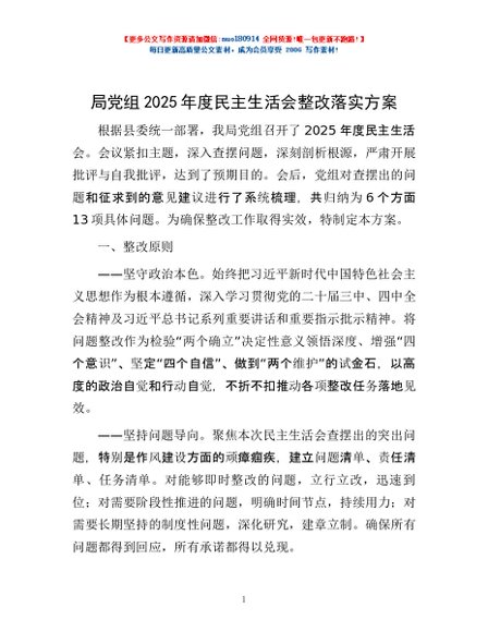县委社会工作部领导班子2025年度民主生活会对照检查材料(五个带头)