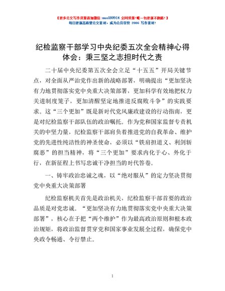 / 纪检监察干部学习中央纪委五次全会精神心得体会:秉三坚之志 担时代之责