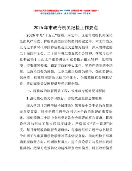 / 2026年市政府机关纪检工作要点