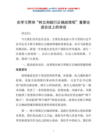 / 在学习贯彻“树立和践行正确政绩观”重要论述会议上的讲话